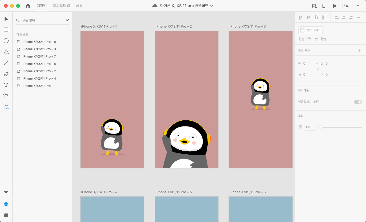 이렇게 만든 펭수를 따로 저장해서 UI/UX도구인 어도비 XD로 불러들입니다.