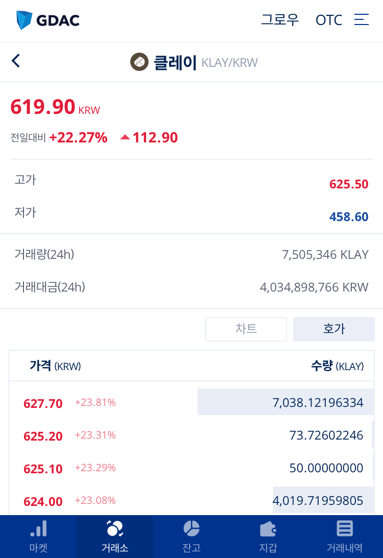 국내 원화마켓 1위인 업비트 거래소엔 없던 클레이가 상장이 된다는 소문으로 말 그대로 급등을 한 것이고 '일시적'이라는 단서가 붙어 있더라구요.