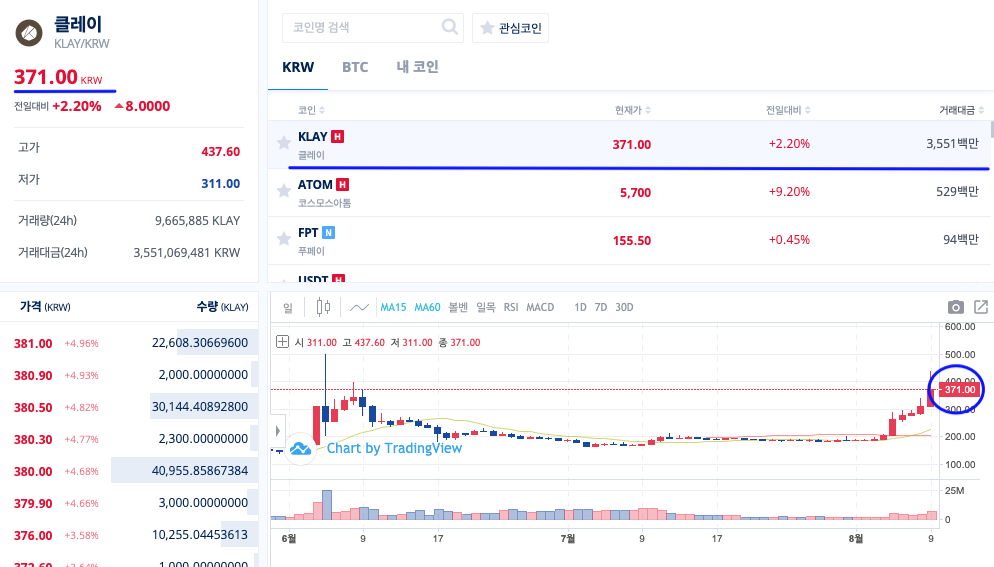 클레이는 이미 업비트에 상장되어 있었다던데?