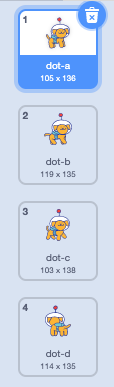 - 그리고 스프라이트들(강아지 로봇)은 적당한 크기로 사이즈를 조정하세요. 처음 끌어다 놓으면 크기가 꽤 커서 도망다니기 쉽지 않거든요. 마우스 포인터가 움직이는 것을 따라 강아지가 달아나고 달아나는 강아지를 로봇이 계속 따라다니게 만들 거예요.