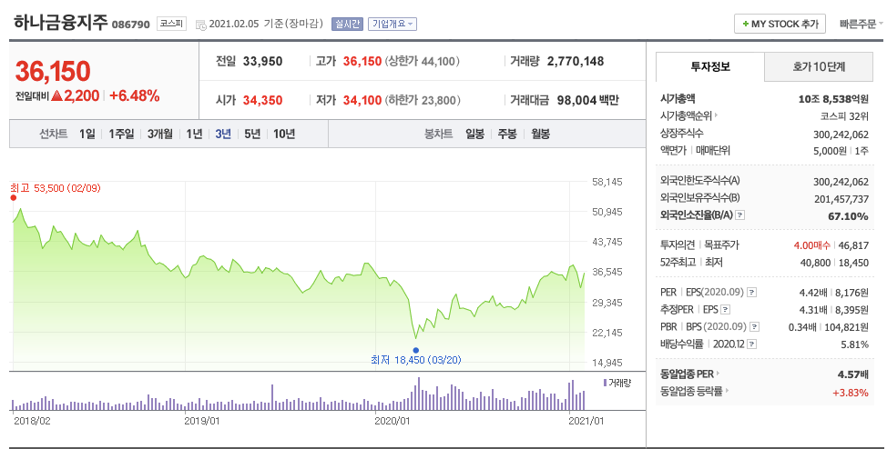 하나금융지주도 살펴볼까요?