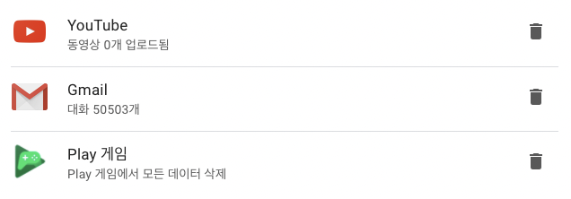데이터를 다운로드 하고 계정 처리 계획까지 완료했다면 이제 구글 서비스를 삭제할 것인지 구글 계정을 삭제할 것인지를 고민해봐야합니다. 구글 서비스 삭제는 사실상 지금 알아보려는 목적과는 크게 상관이 없는 기능이라고 할 수 있습니다. 예를 들면 유튜브, 지메일, 구글 플레이 게임 등의 데이터를 삭제하는 기능입니다.