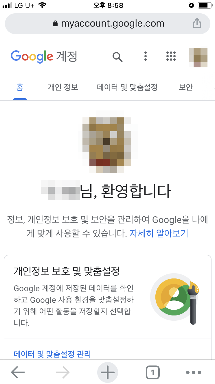1. 구글 계정에 저장되어 있는 정보를 검토해보세요.