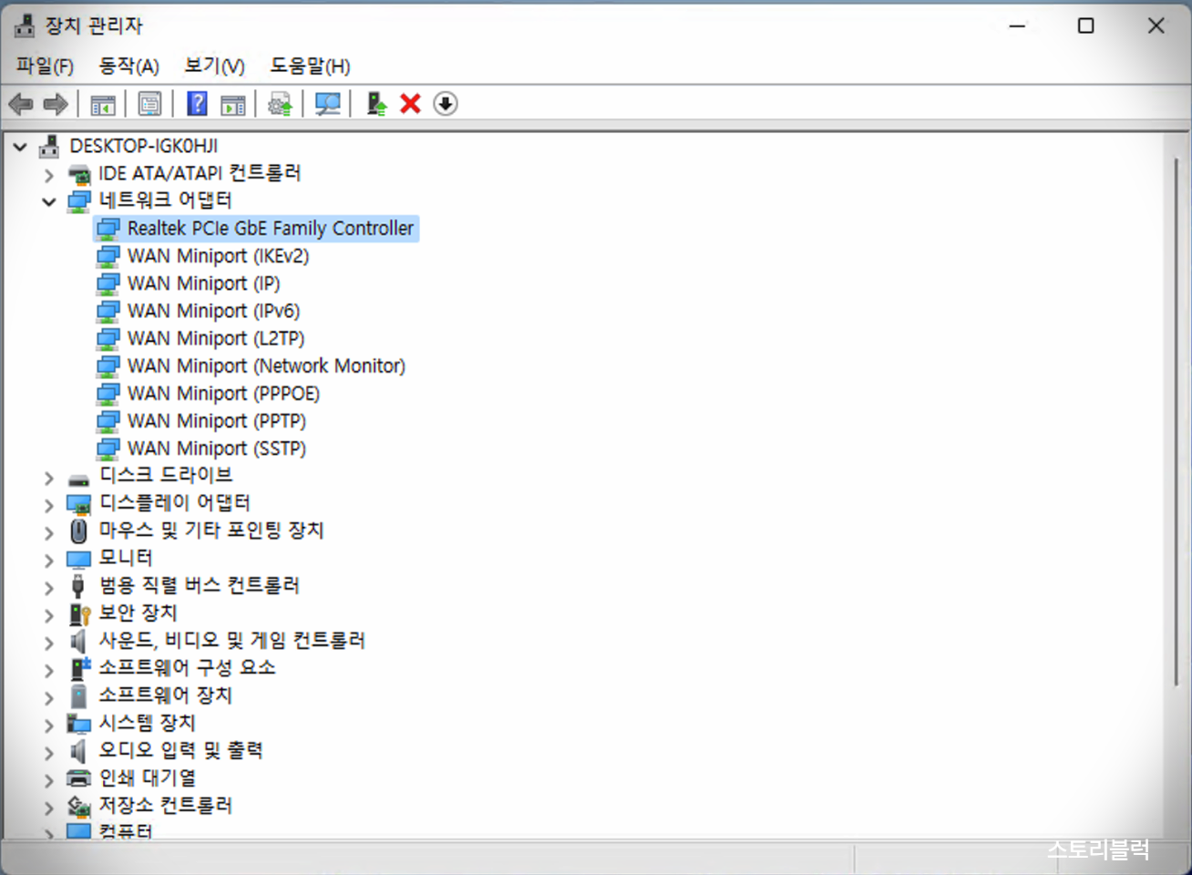 윈도우의 시작버튼을 마우스 오른쪽으로 누르면 장치관리자 메뉴가 있습니다. 장치관리자를 누르면 창이 하나 열리는데요. 네트워크어댑터 > Realtek PCIe Gbe Family Controller를 마우스 오른쪽 버튼으로 선택하면 속성(Properties) 메뉴가 있습니다.
