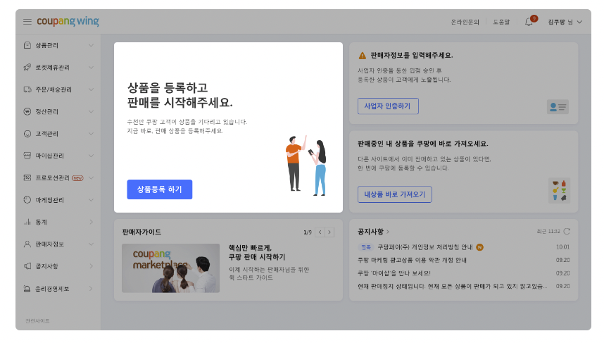 쿠팡 판매자센터 판매자 입점하는 방법
