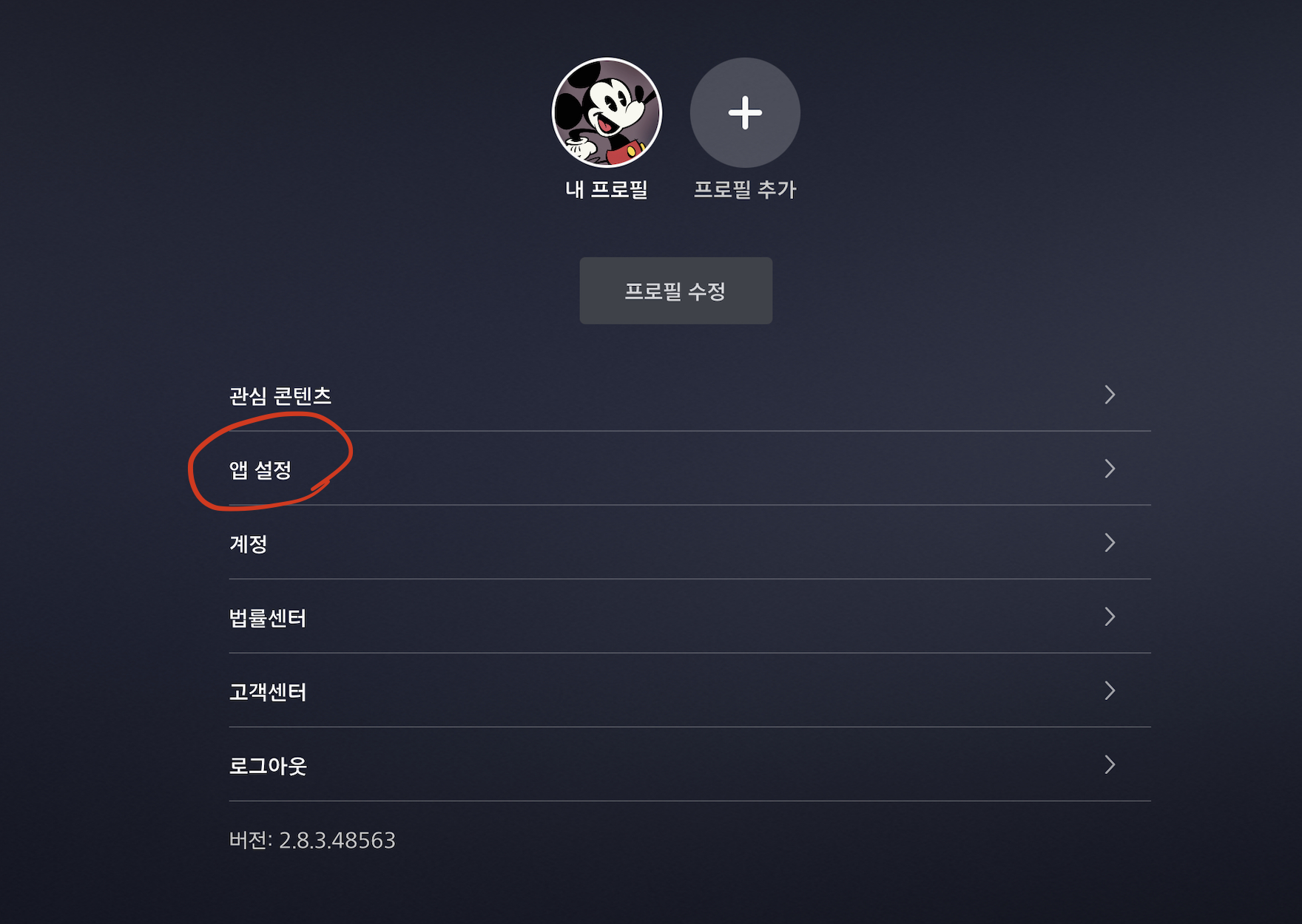 그나마 4K인지 화질을 확인하려면 어디서 봐야하는지 쉽게 찾기 어려운데요. 프로필을 누르면 앱설정을 확인할 수 있습니다. 플레이하는 도중엔 안보이니까 앱에선 첫화면에서 하단에 내 프로필을 누르면 앱설정이라는 메뉴가 보입니다. 앱설정 > 영상화질 메뉴를 누르면 기본, 중간, 최상 중에 화질을 선택할 수 있습니다.