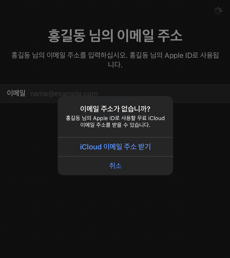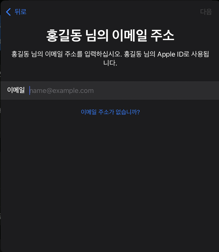 자녀 계정 생성을 탭하고 화면의 지시에 따라 단계를 진행하시면 됩니다. 부모 동의를 거친 후 자녀의 이름 생년월일 등을 입력하고 아이디로 로 사용할 이메일을 입력하면 됩니다. 여기서 이메일 주소가 없으면 "이메일 주소가 없습니까"를 누르면 @icloud.com로 아이디를 만들 수 있습니다. 기존에 가지고 있던 이메일이 아무래도 편할 수 있지만 애플용으로 icloud.com 계정을 생성해두는 것도 나쁘지 않은 것 같아요.
