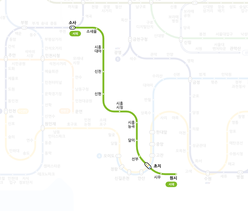 대곡소사선은 대곡역(3호선, 경의선)과 1호선 소사역을 연결합니다. 역의 갯수는 6개역인데요. 현재 운행되고 있는 서해선(소사-원시)과 직결운행될 예정입니다. 소사역은 1호선의 부천과 역곡 사이에 있는 역입니다. 대곡소사선 노선은 대곡-능곡-김포공항-원종-부천종합운동장-소사로 이어지는데요, 서해선으로 직결되기 때문에 사실상은 서해선의 연장선이라고 합니다.