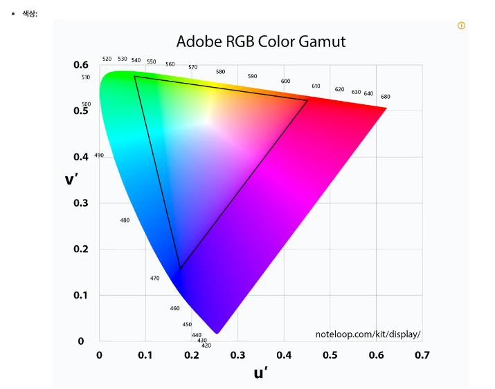 어도비 RGB와 sRGB는 컬러 스페이스(색공간)입니다. 이 두가지 형식과 더불어 DCI-P3가 모니터나 TV를 구매할 때 요즘 가장 많이 기준으로 삼고 있고 색재현율에 대한 수치도 가장 많이 확인할 수 있는 것 같습니다.