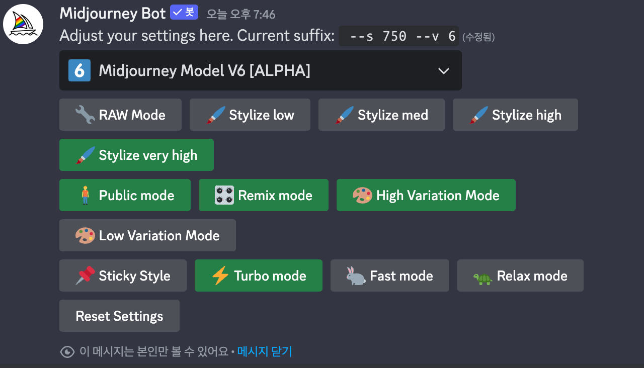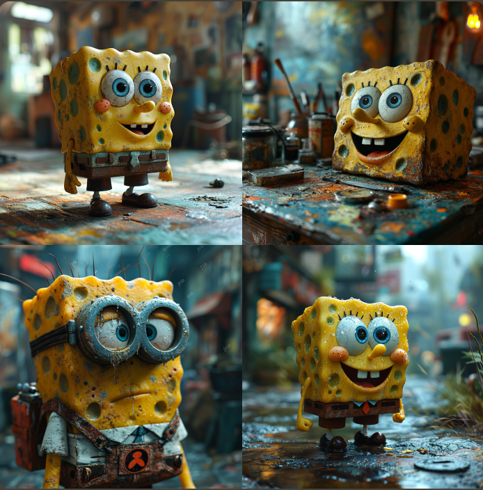 단지 /settings에서 V6 알파버전을 선택하고 /imagine 프롬프트로 spongebob이라고 입력했을 뿐입니다.