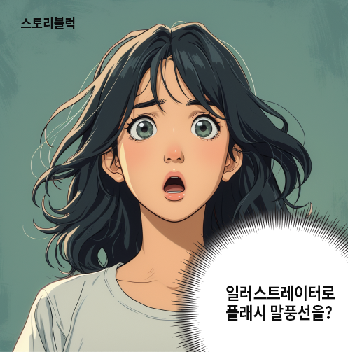 위 이미지의 말풍선이 플래시 말풍선 - 성계 말풍선이라고 부르는 분도 있구요. 놀람 같은 감정을 담고 내적 독백을 할 때 사용하는 말풍선입니다.