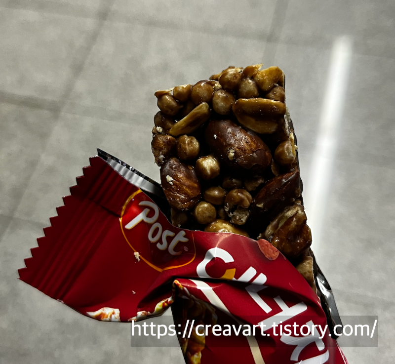 포스트 에너지바도 맛은 꽤 균형잡혀있지만 조금 더 단단한 것 같고 좀 달게 느껴졌습니다. 하지만 이건 취향차일 수도 있겠구요.