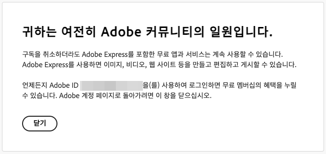 구독 취소하려면 어도비 계정으로 이동합니다.