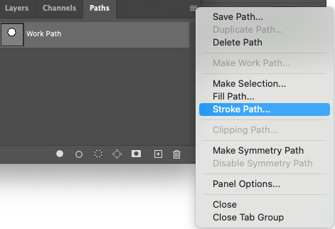 path에서 우측 상단 버튼을 누르고 stroke path를 선택해주세요.