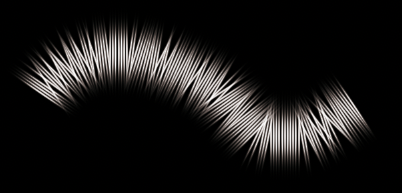 Shape Dynamics는 size jitter를 높이면 플래시의 모양이 크고 작은 것이 더 다양하게 섞이고, jitter를 낮추면 균일해집니다.