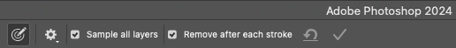 바로 적용하고 싶지 않고 생성형 채우기처럼 새로운 레이어로 처리하고 확인하고 싶을 때는 sample all layers옵션을 켜주고 새로운 레이어를 위에 만든 후 브러쉬 작업을 하면 새로운 레이어에 덧씌워지면서 이미지를 지워주게 됩니다. 이 기능을 사용하려면 꼭 새로운 레이어를 생성하고 작업해야한다는 점을 기억해주세요!