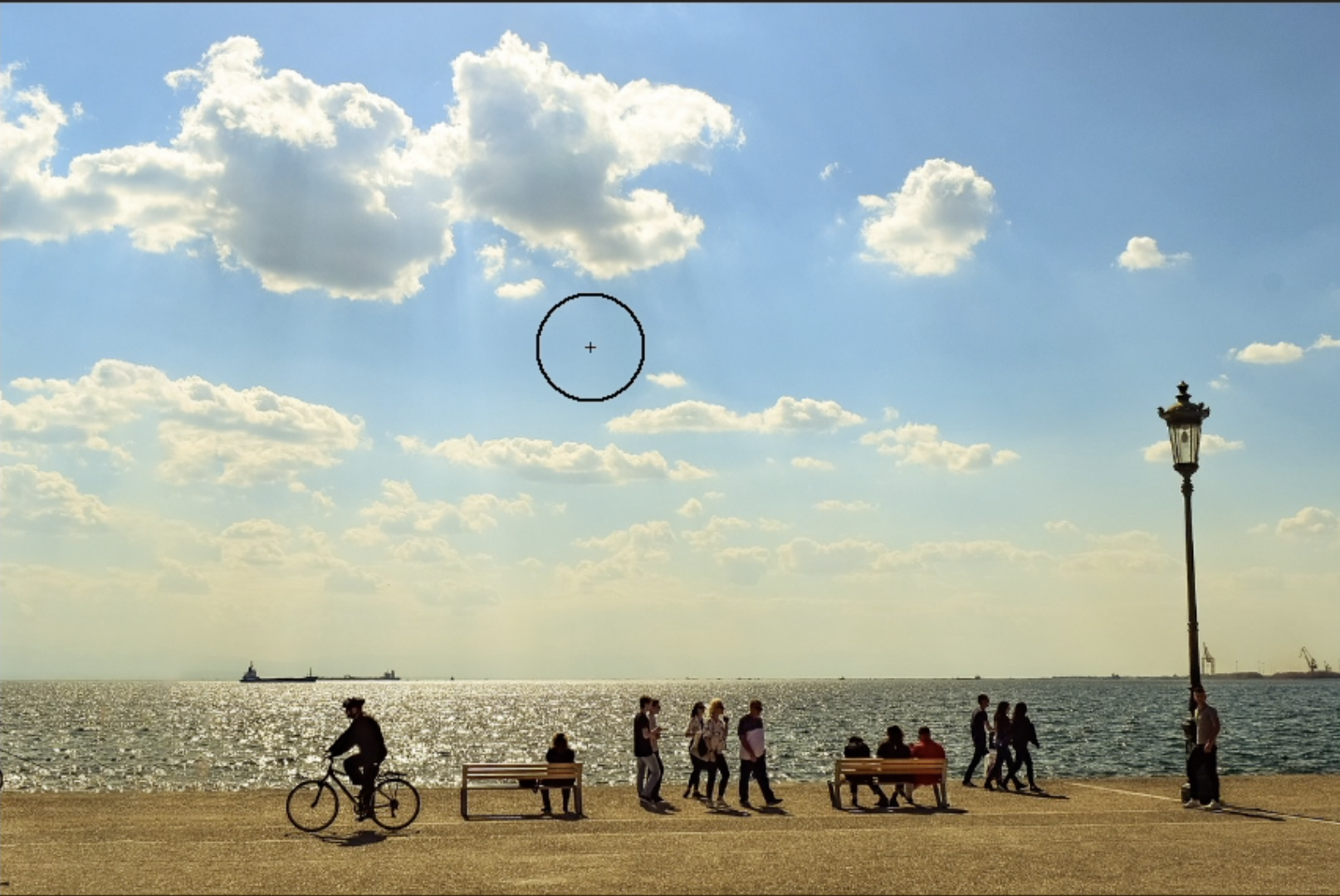 아래의 이미지로 Remove tool을 사용해 보겠습니다. 제거도구를 선택하고 적당한 지워야할 대상보다 적당히 크게 브러쉬 크기를 조절합니다. 조절은 상단의 옵션 바에서 가능합니다. 저는 왼쪽의 가로등을 삭제해보겠습니다.