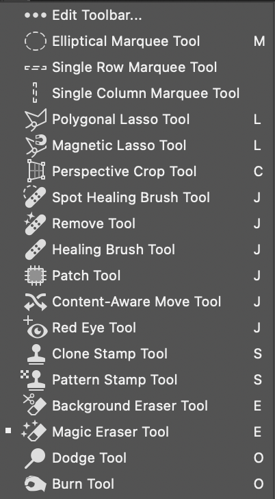 개인적으로는 Remove tool(제거도구)를 잘 사용하지 않았었는데요. 최근에는 더 성능이 좋아진 것 같아서 가끔씩 사용하고 있습니다. 이미지의 필요 없는 영역을 자연스럽게 삭제하는데 유용한 도구입니다. 도구모음에서 아래와 같은 모양의 도구를 선택하면 사용할 수 있습니다.