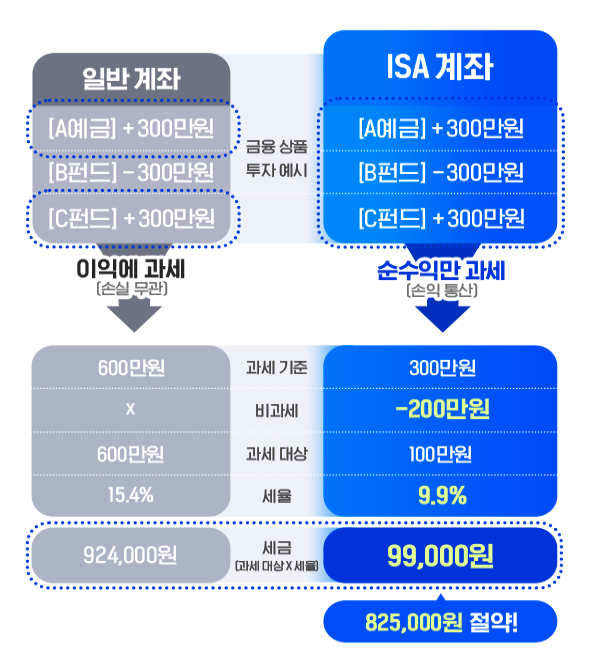 ISA는 개인자산종합관리 계좌라고 합니다. 예·적금, 펀드, ELS 등 다양한 금융상품을 한 계좌에 담아서 운용하면서 손익통산 및 비과세(저율분리과세) 혜택을 받을 수 있는 절세형 계좌입니다.