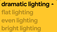 그리고 imageFX는 위와같이 프롬프트의 일부가 이미지를 생성하면서 셀렉트 박스가 같이 만들어지는데요. 예를 들어 dramatic lighting을 클릭해보면 flat lighting, even lighting, bright lighting등 다른 옵션으로 이미지를 생성할 수 있도록 제안해줍니다. 이런 부분은 사용자 입장에서 다른 분위기를 만들어 보고자 할 때 빠른 선택이 가능해서 도움이 될 것 같아요.