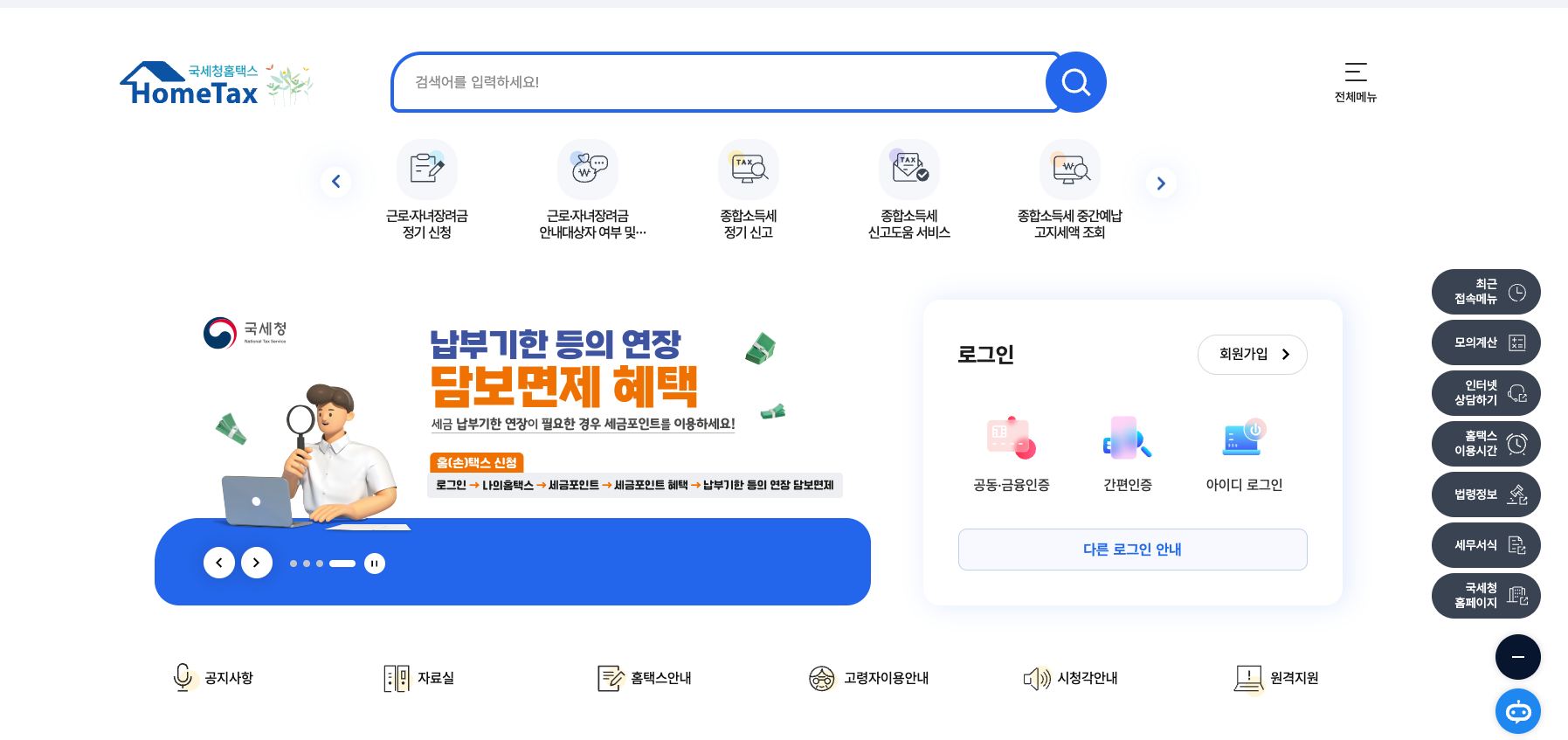 - 국세청 홈택스(hometax.go.kr) 접속, 인증서 로그인